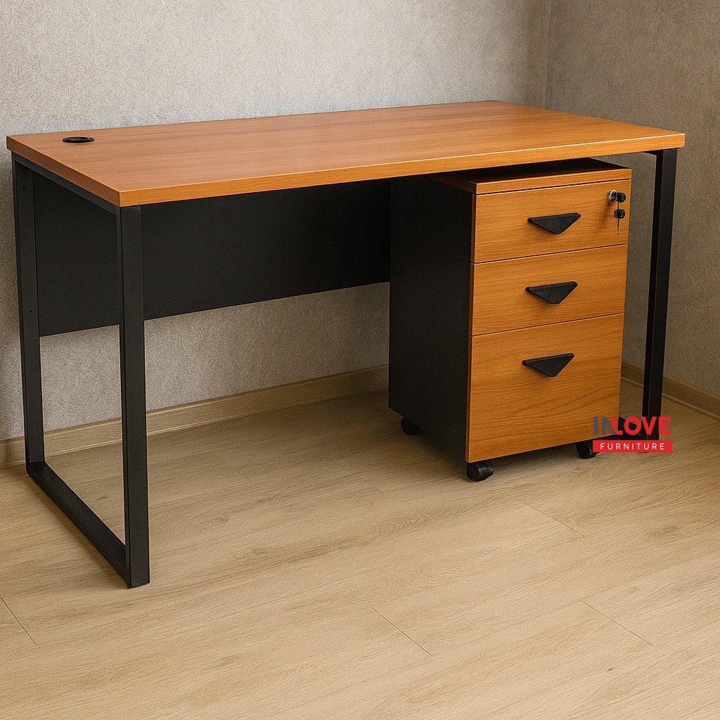 1. โต๊ะทำงานโล่ง ขาเหล็ก ขนาด 180 ซม MSQ-180 D 2. ตู้เอกสาร 3 ลิ้นชัก แบบมีล้อ MM-FC