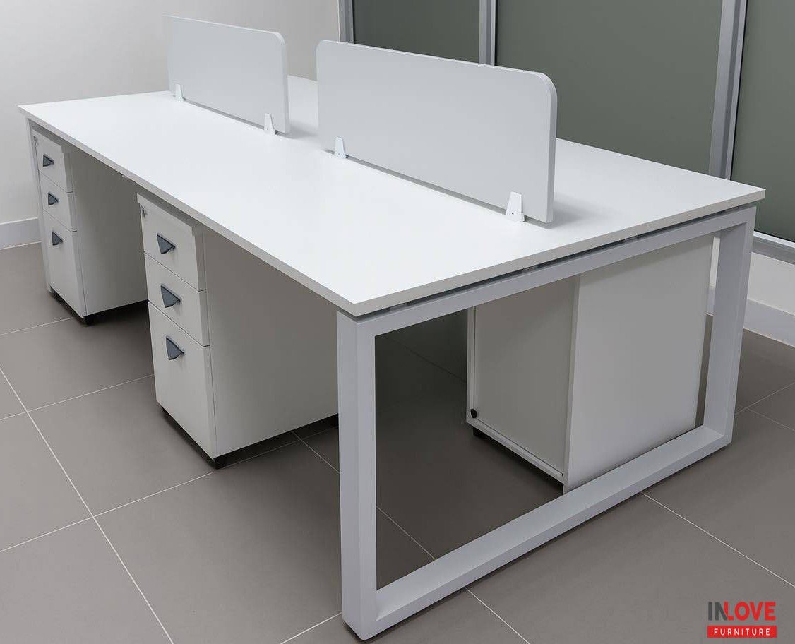 โต๊ะทำงานกลุ่ม 6 ที่นั่ง ขาเหล็กสี่เหลี่ยม + ตู้เอกสาร ล้อเลื่อน + มินิสกรีนกั้นหน้า