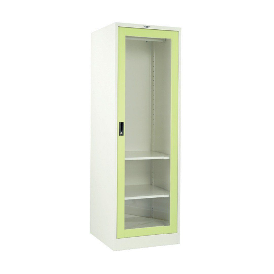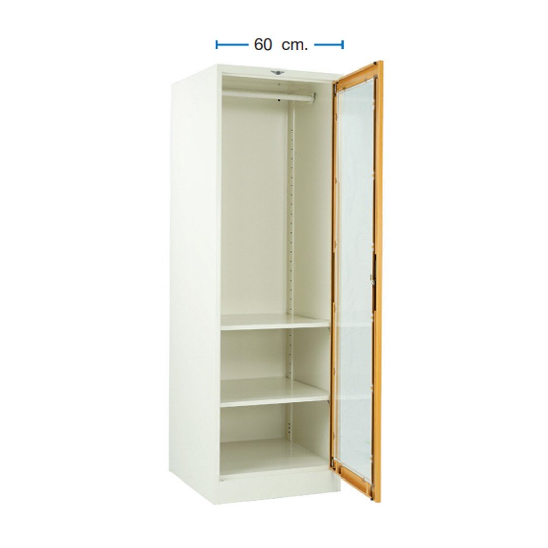 ตู้เสื้อผ้าเหล็กบานเปิด แบบกระจก ทรงสูง ขนาด 60 ซม